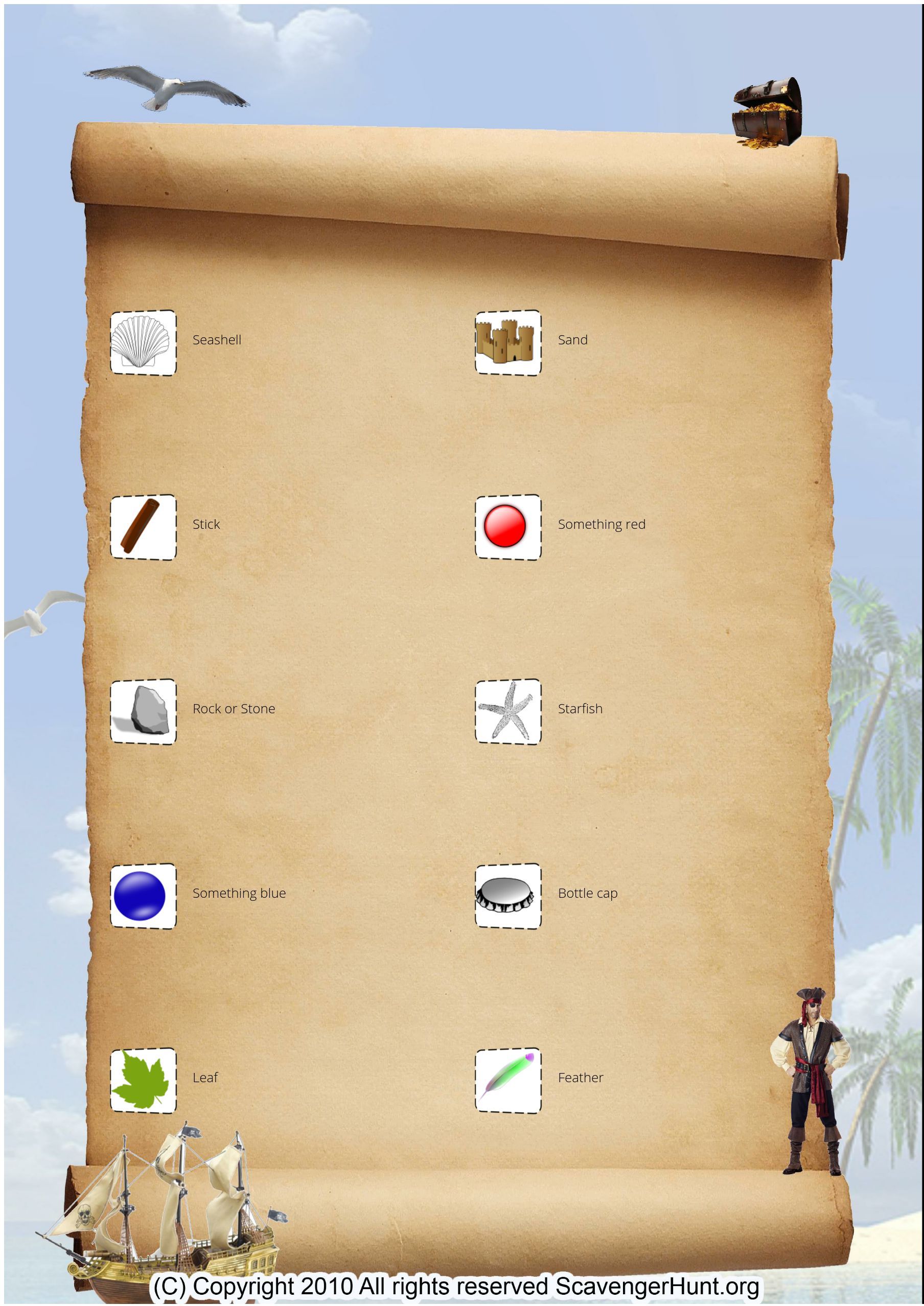 Pirate Scavenger Beach Hunt