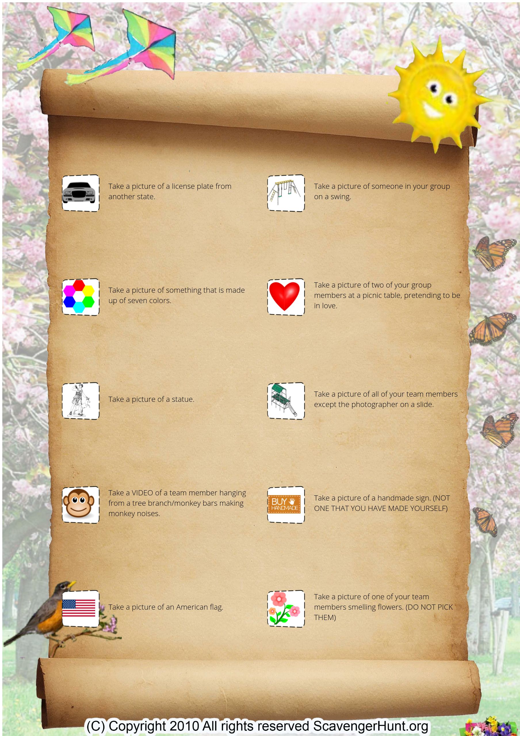 Take a picture of one of your team members smelling flowers. (DO NOT PICK THEM)
